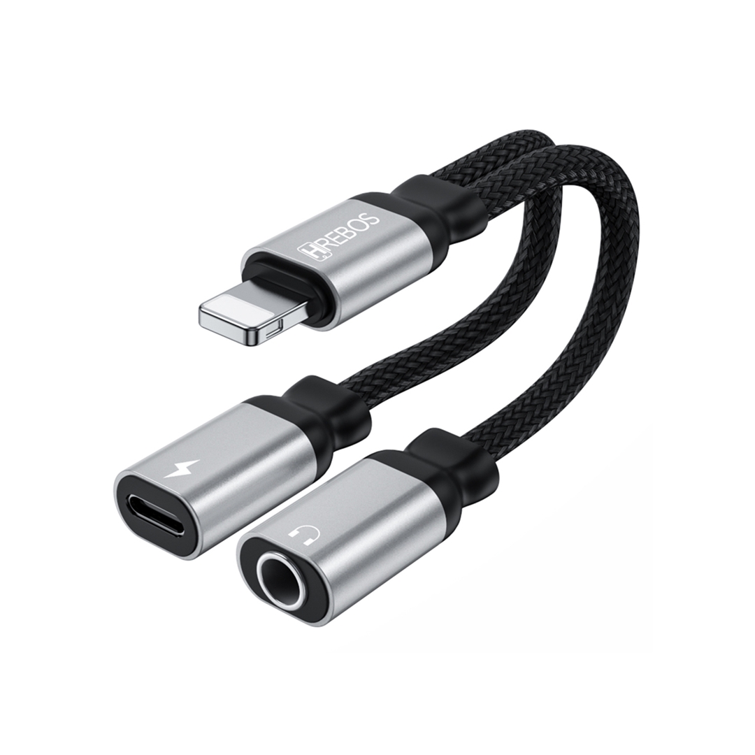 1 Adaptador de Fone de Ouvido iPhone para Áudio P2 3.5mm (Música) + iPhone (Carregamento) - Hrebos HS-228