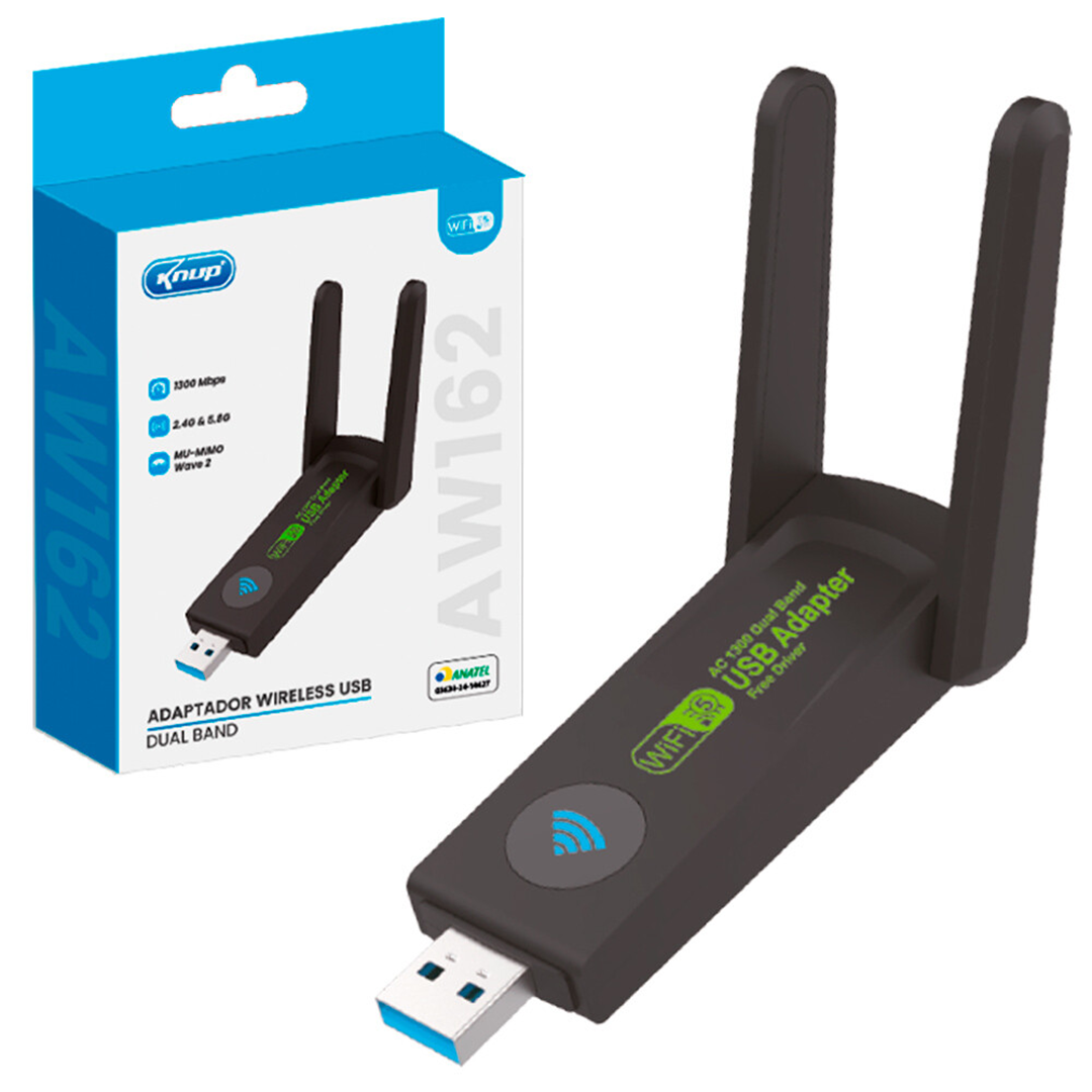 1 Adaptador Wi-Fi USB 3.0 Dual Band, 2.4 e 5.0G, 1300Mbps Com 2 Antena - Knup KP-AW162