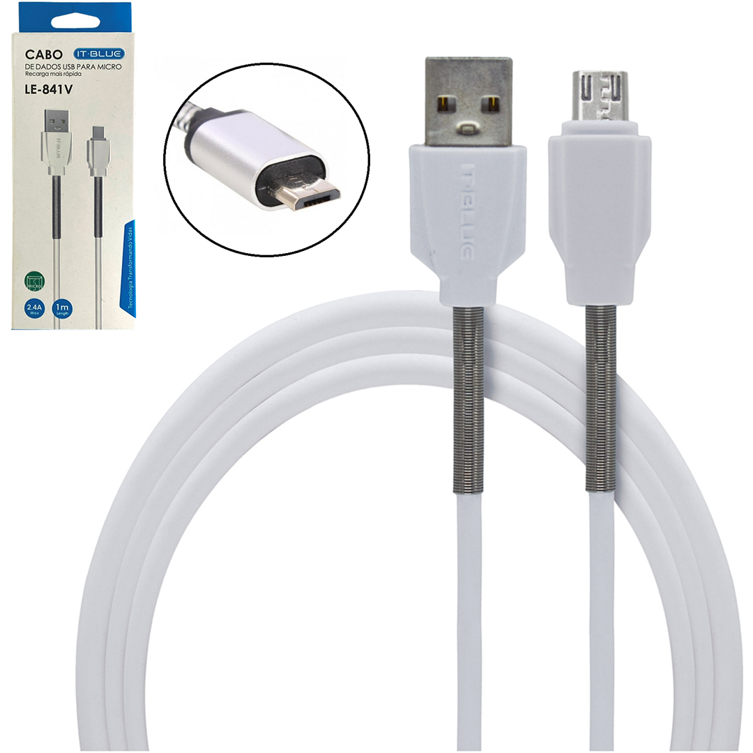 O cabo de dados Micro USB LE-841V da It-Blue efetua a transmissão de dados e a recarga de celulares e tablets. A sua composição em fio de puro cobre reduz em 30% o tempo de carregamento dos aparelhos em comparação com produtos similares, além de vir com 3.A de potência.