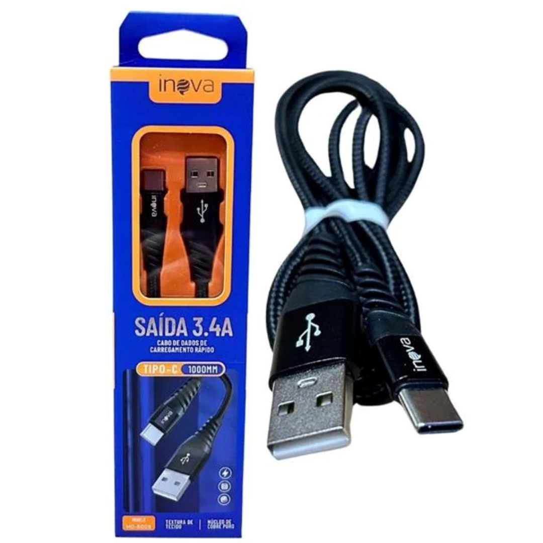 ⚡ Cabo Inova MD-6009 - Tipo C, 3.4A, 1 Metro, Trançado. O cabo que não só carrega. Ele impressiona.