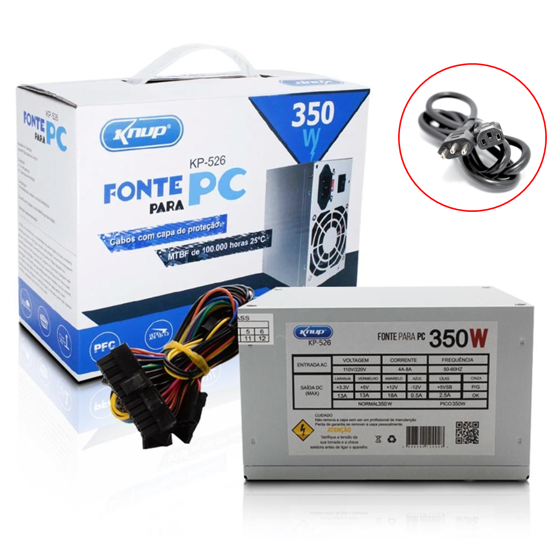 A Fonte ATX 350W Knup KP-526 oferece potência confiável para o seu computador. Com design e compatibilidade bivolt, proporciona facilidade de uso e versatilidade. Seja para sistemas básicos ou configurações mais robustas, esta fonte garante estabilidade e eficiência energética.