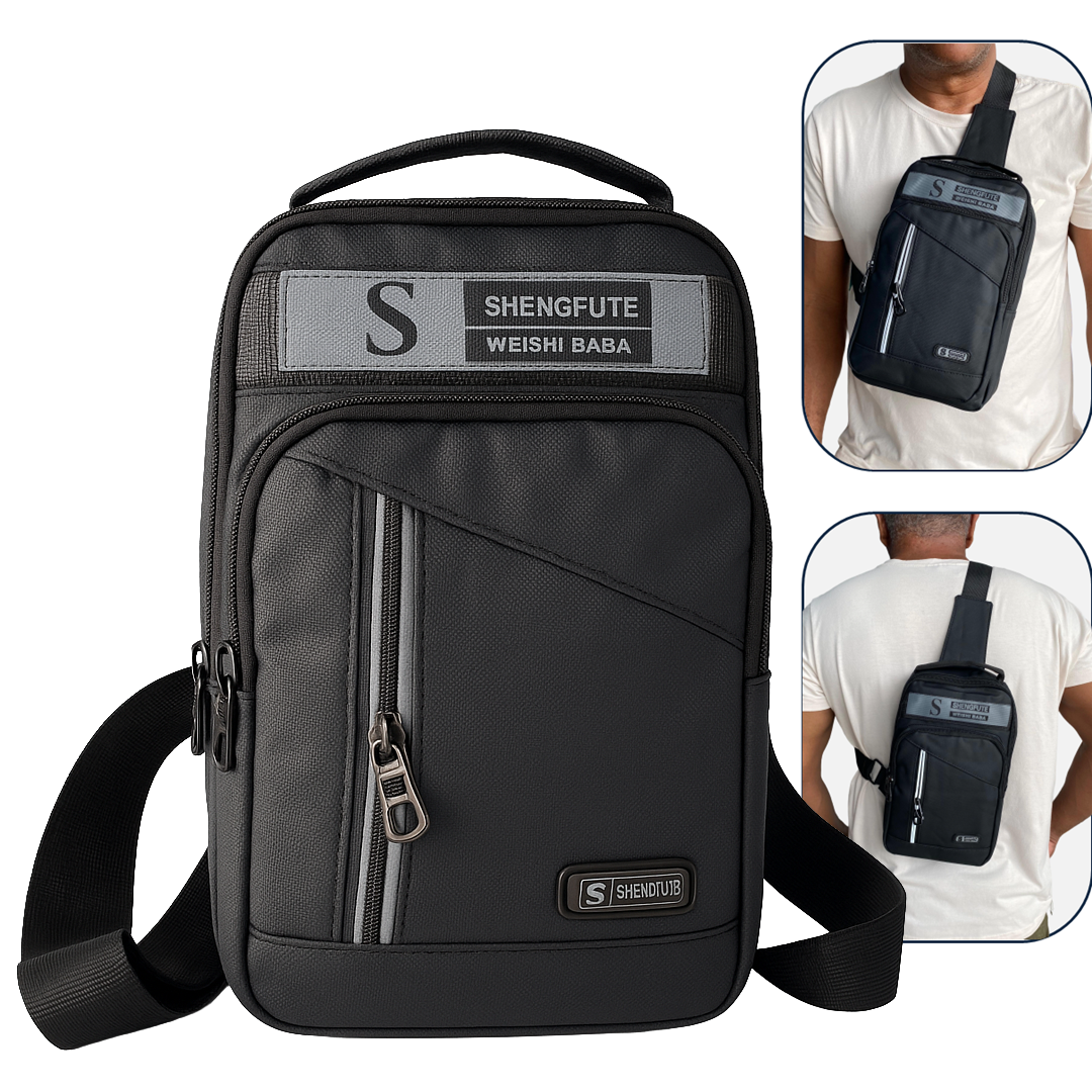 1 Mini Bolsa Unissex de Ombro, Peito e Transversais Multifuncionais, Preta - Shengfute A2517