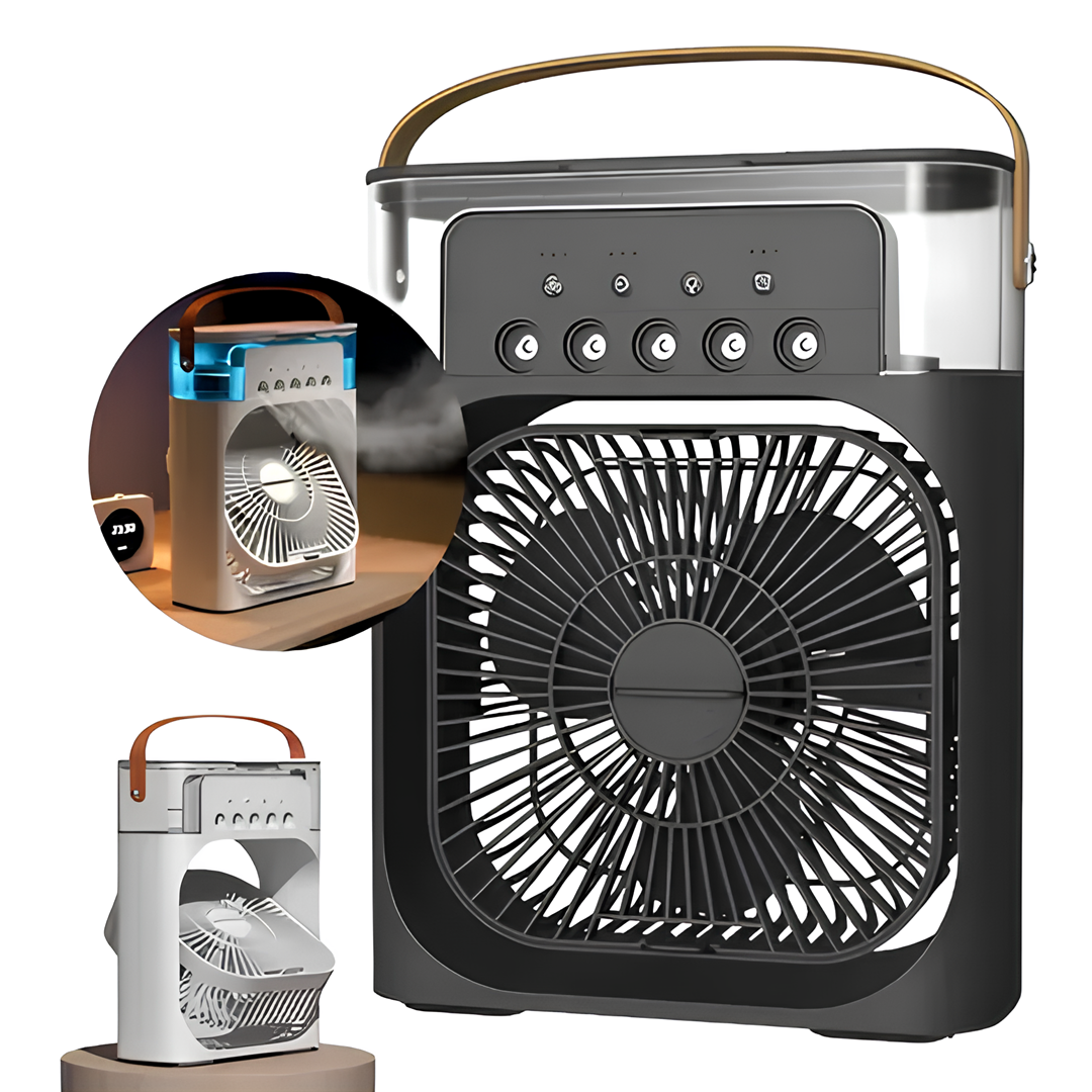 1 Mini Ventilador de Mesa com Umidificador USB de 3 Velocidades e RGB
